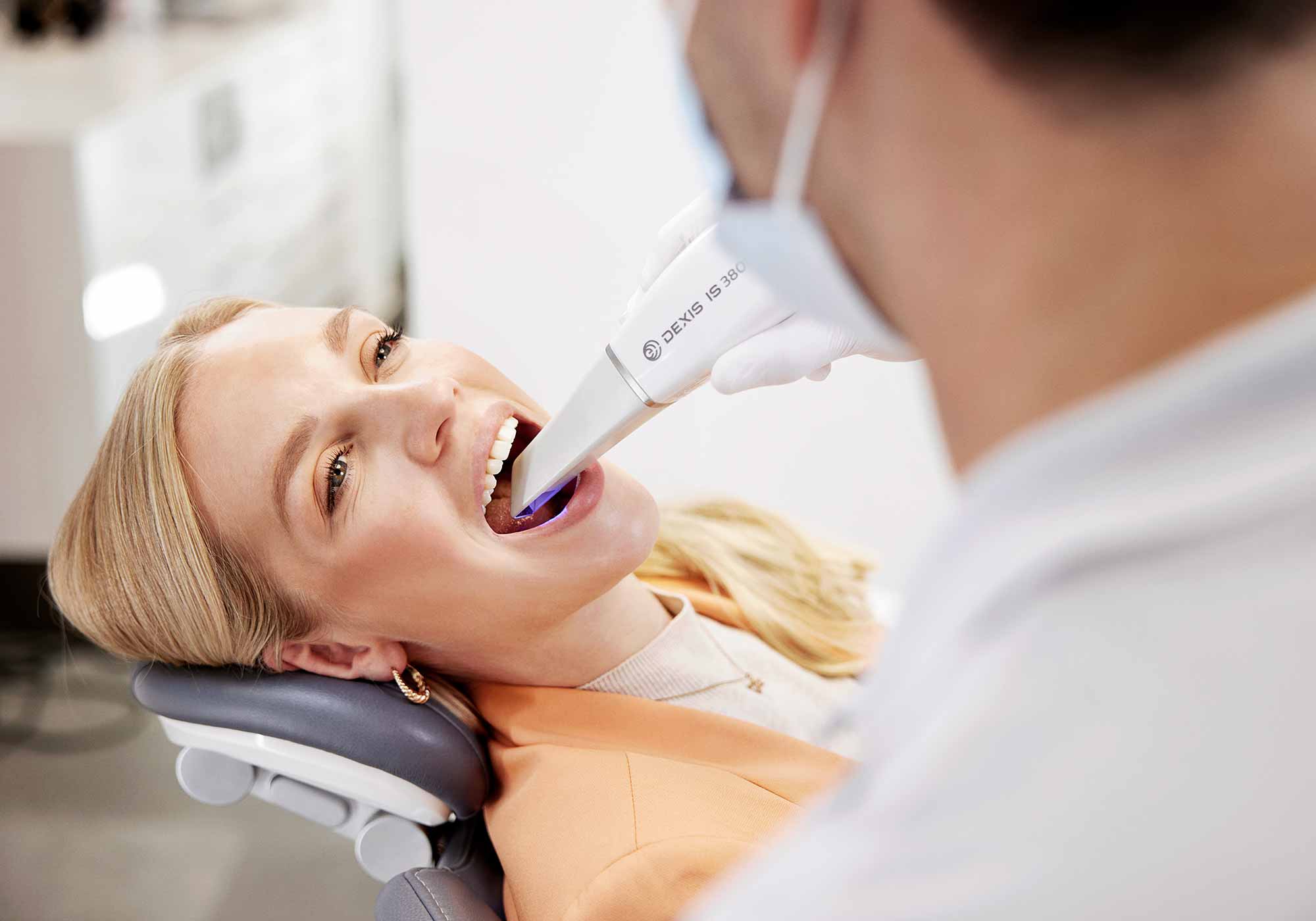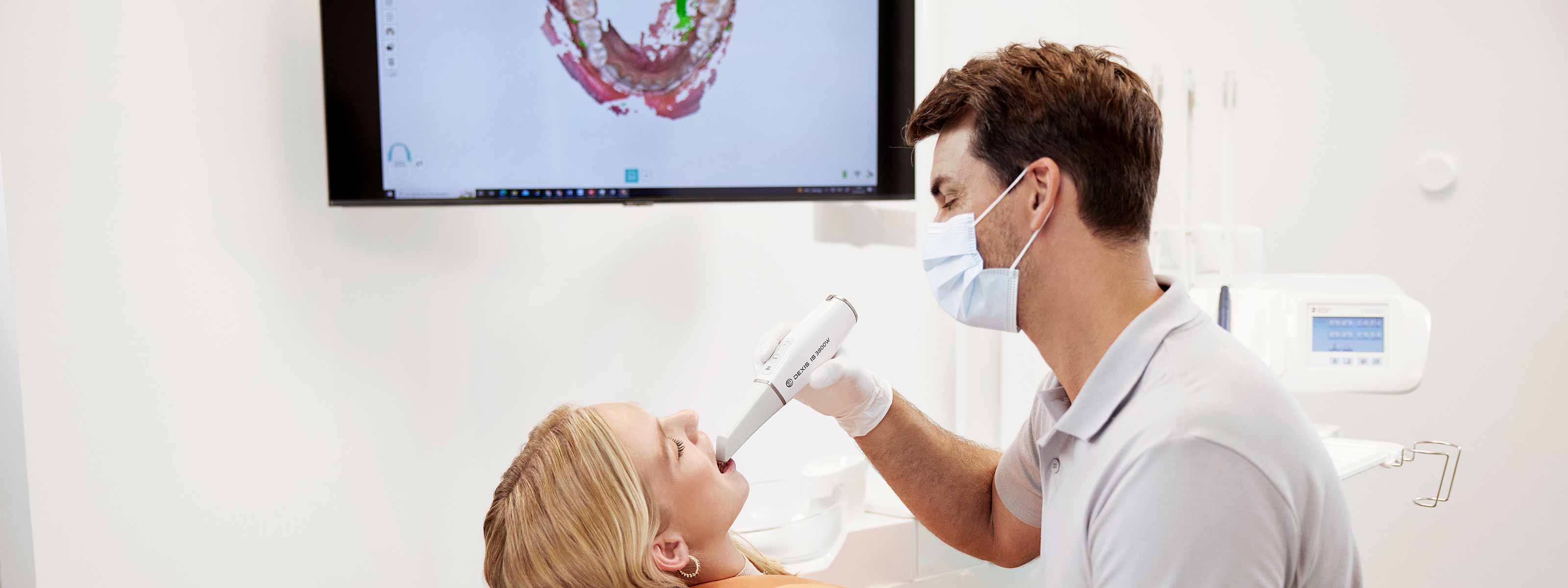 Unser Intraoralscanner erstellt präzise 3D-Bilder Ihres Mundraums, ohne dass ein herkömmlicher Zahnabdruck erforderlich ist. Diese fortschrittliche Methode bietet nicht nur einen höheren Komfort, sondern liefert auch präzisere Daten für die Behandlungsplanung. Die Behandlungsplanung kann direkt am Computerbildschirm durchgeführt werden, ohne dass Zahnmodelle hergestellt werden müssen. Hier kommt es somit auch zu weniger Abfallprodukten und die Umwelt wird weniger belastet.